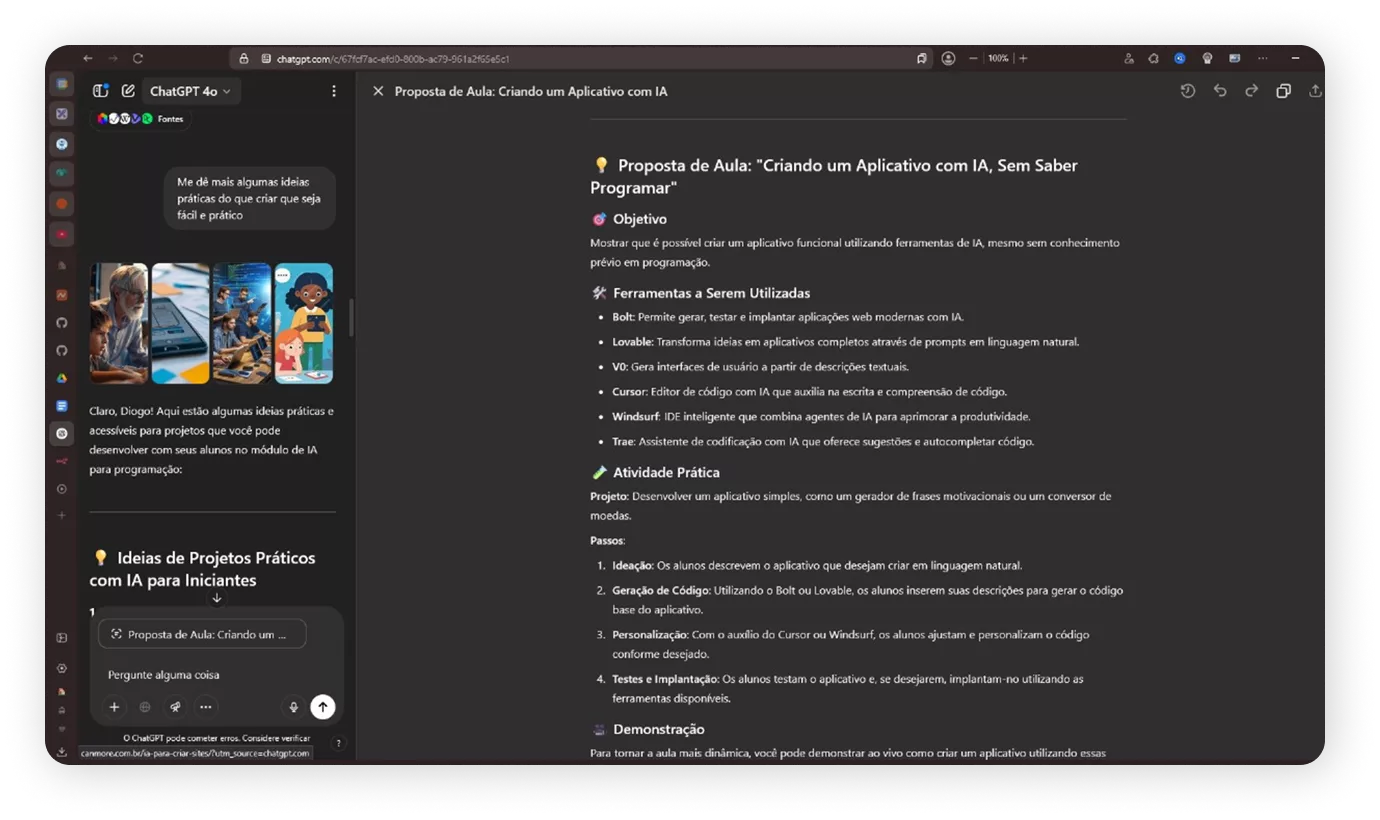 Diogo, seu professor nesse curso, é especialista em inteligência artificial, professor e escritor. Sempre busca lecionar e desenvolver projetos inovadores que combinam automação e inteligência artificial.